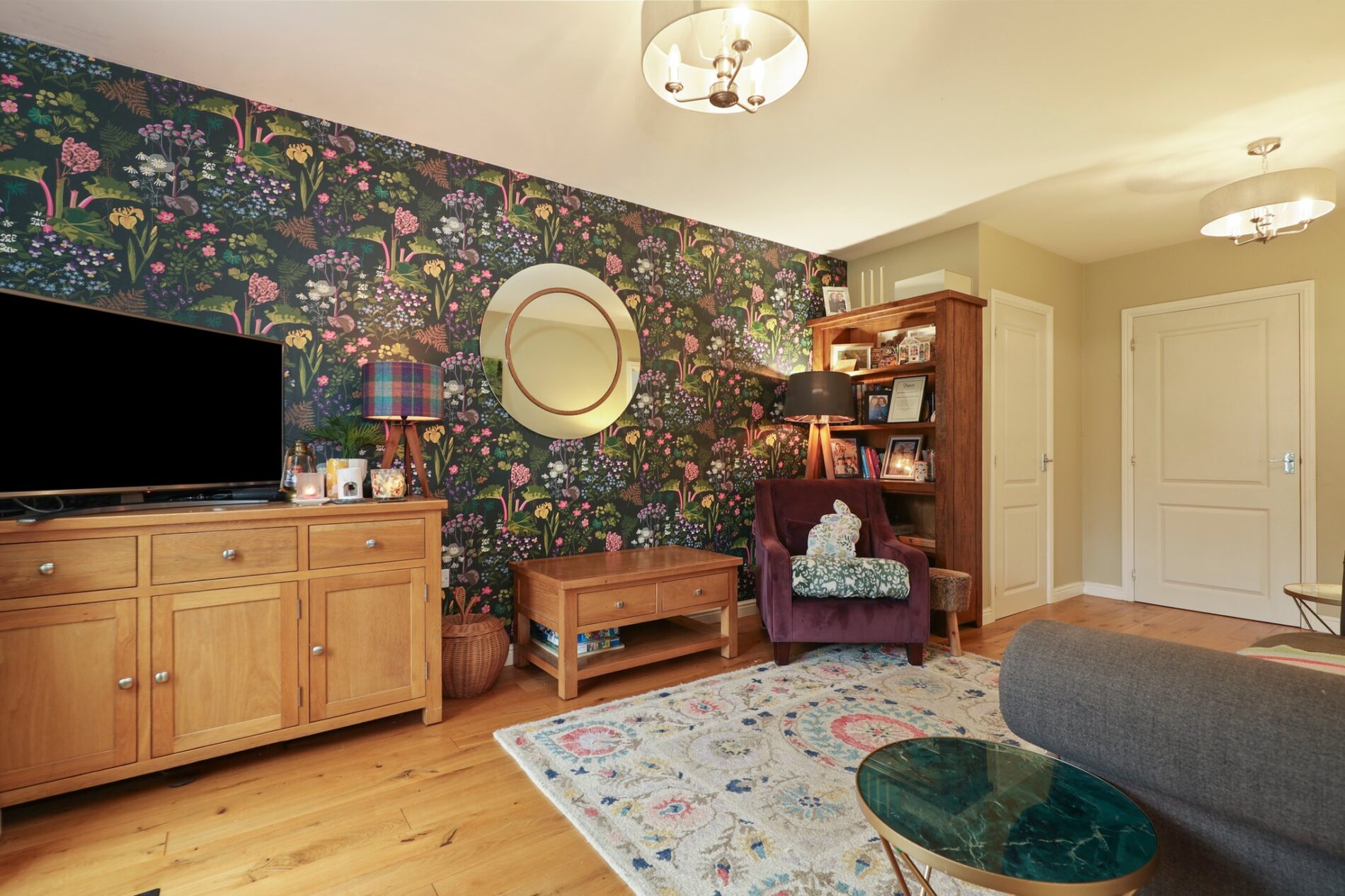 Externally, the rear garden is designed for low maintenance and is arranged into a number of distinct areas to enjoy—ideal for those seeking a “lock up and go” lifestyle. To the front, there is driveway parking for two vehicles. The property’s position is a particular highlight, overlooking the development’s communal park/play area, allowing children to enjoy extended outdoor space with reassuring visibility for parents. There is also an electric car charging point discretely positioned to the right of the house out of immediate view from the front aspect.