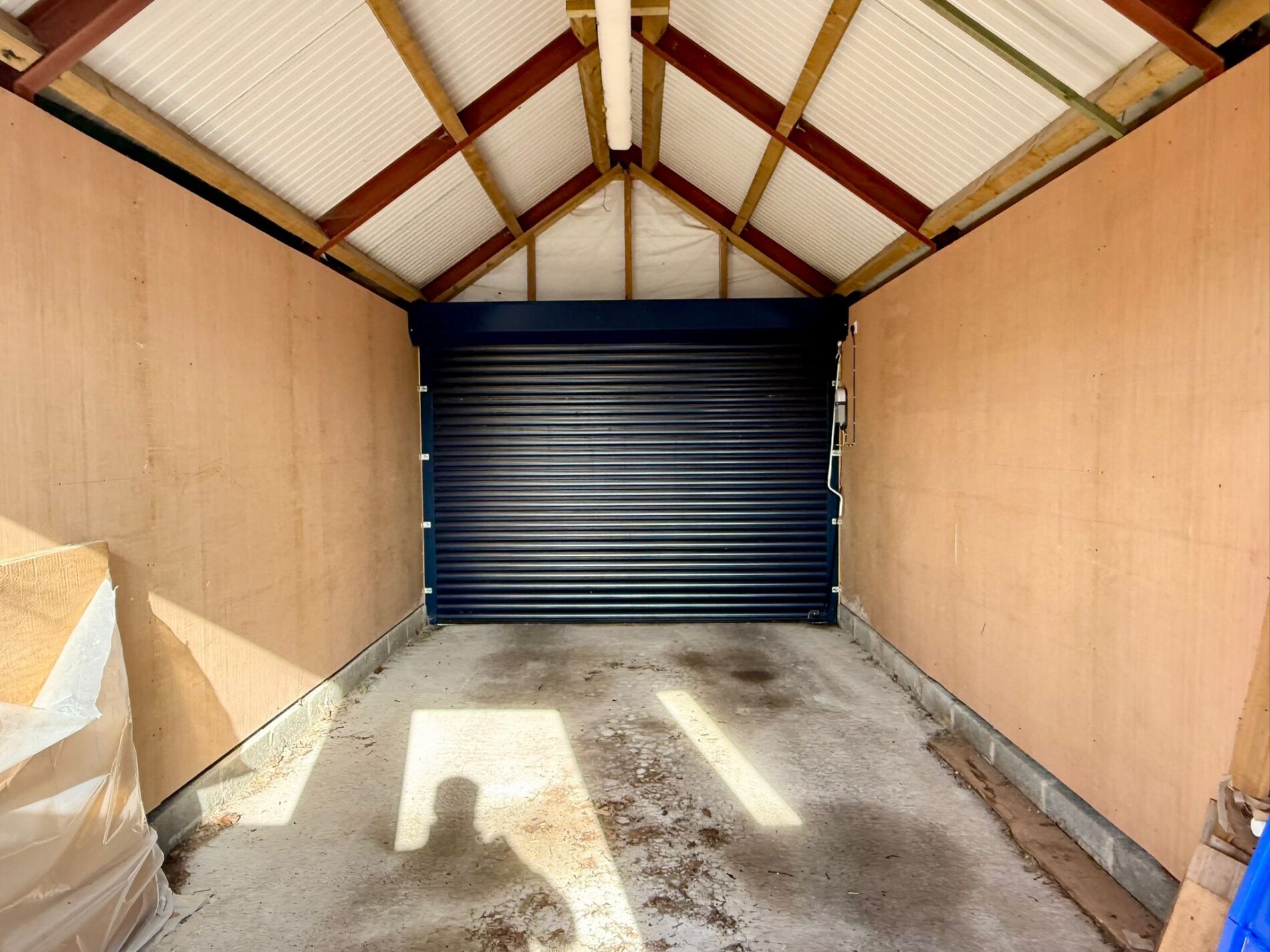 - Detached garage with space to park a car, electricity and electric-controlled door.