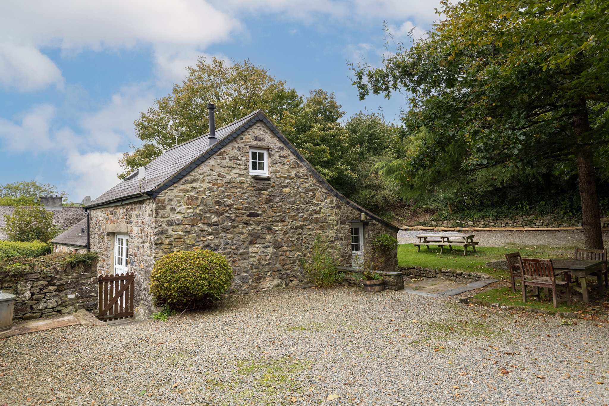 The property is discreetly positioned in a corner, ensuring privacy and seclusion. The gardens are predominantly laid to lawn and are enclosed by traditional Pembrokeshire hedging. Off-road parking is available for multiple vehicles.