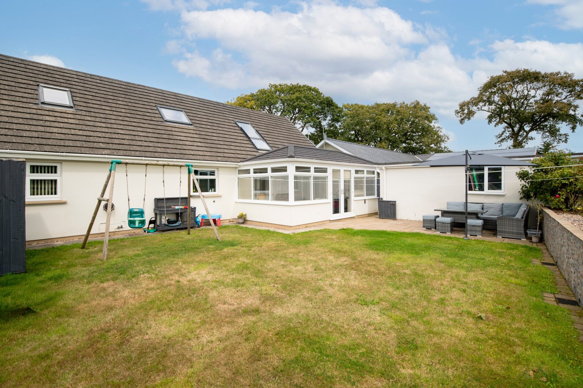- Open-plan lounge/dining room, sun room, and well-appointed kitchen/breakfast room.